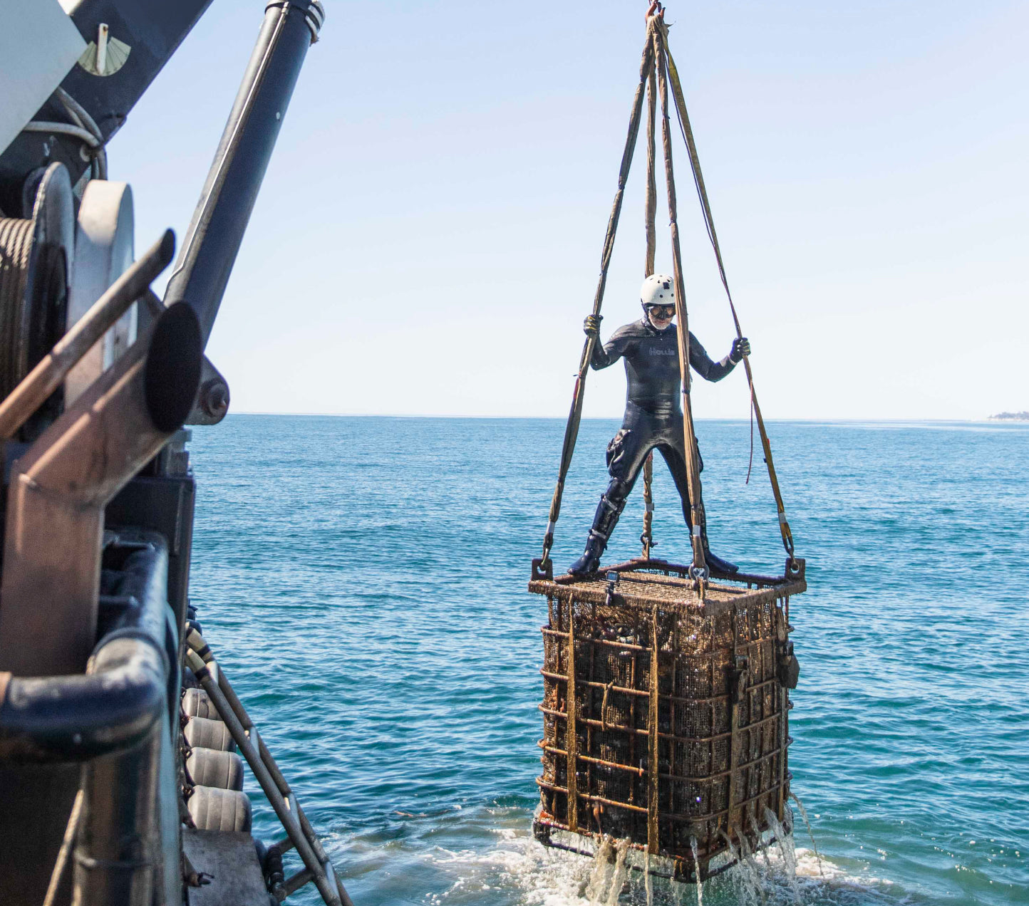 At Ocean Fathoms, we’ve pioneered a groundbreaking, patented process that evolves the art of wine aging by harnessing the ocean’s natural power. We begin with the creation of our proprietary cages, designed with utmost respect for the marine environment and sea life. Crafted from recycled non-galvanized steel and zinc, these cages form an underwater “battery” with the salty ocean water, generating a natural galvanic current. The glass wine bottles, along with the current, activate the evolutionary process that enhances the wine’s character and complexity.